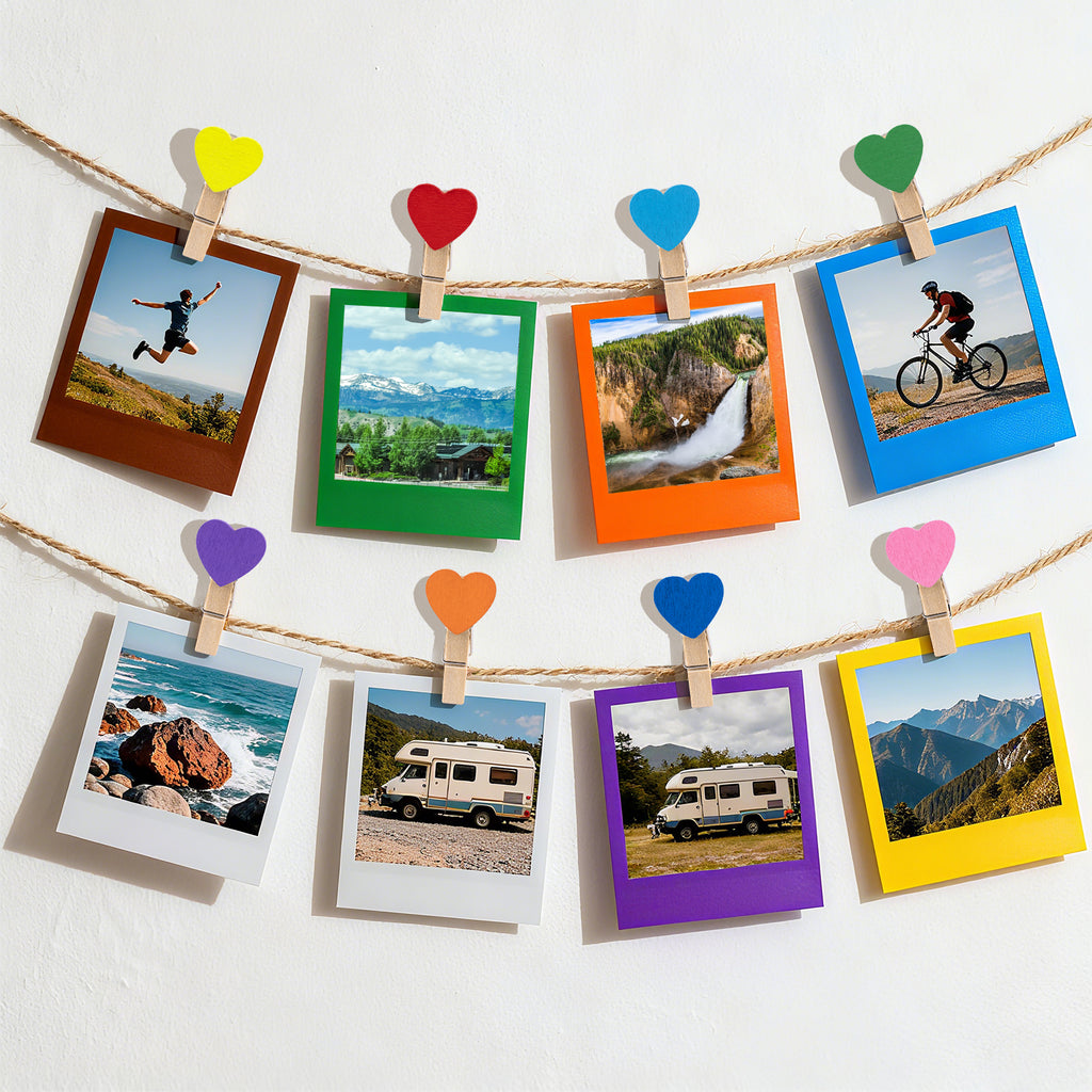 Colorful Heart Clips - Package includes 50pcs of small photo clips, comes with 1pcs of twine, the size of the heart photo clips is 1.4x0.3inch/3.5x0.8cm, and the length of the twine is 33ft/10m, there are enough quantity and sizes suitable for your photos hanging.