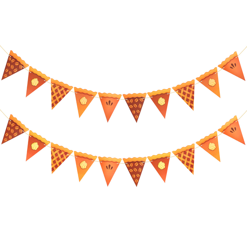jijAcraft Pumpkin Pie Banner Thanksgiving Decoration – 2PCS Pre-Strung Pumpkin Pie Garland, Thanksgiving Party Banner for Fall Party Table Decor, Home Mantel Fireplace Decorations