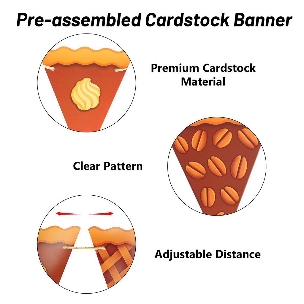 [Pre-Strung for Convenience]–No assembly required! Pumpkin pie banner comes pre-assembled,great for busy hosts. Simply open the package and hang it on walls, windows, stair railings, or mantels to instantly elevate your holiday decor.